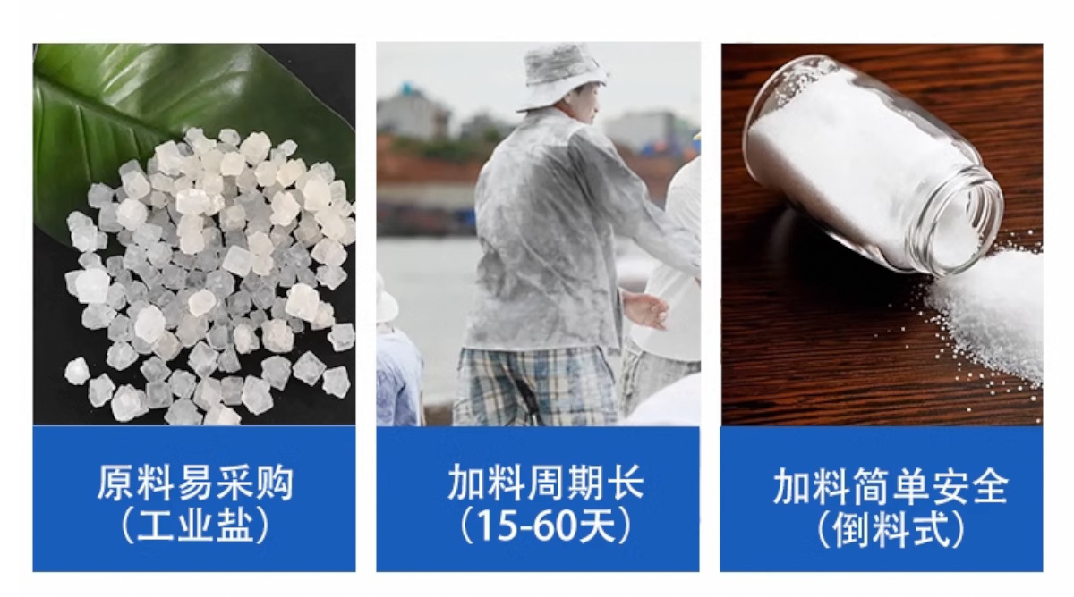 采用負(fù)壓抽吸出藥,結(jié)構(gòu)合理,可靠性強(qiáng),故障率低,使用壽命長(10年以上)。自動(dòng)控制,設(shè)備運(yùn)行可與水泵等設(shè)備聯(lián)動(dòng)啟停,,控制方式簡單實(shí)用。以氯化鈉為原料,通過電極和隔膜通直流電后產(chǎn)生二氧化氯水溶液體積小(占地面積0.5-1.2平方米)、重量輕、操作簡單、維修方便。